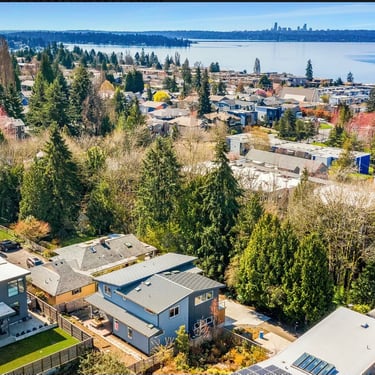6,600 SF Luxury Home with unobstructed water views of Lake Washington. Contemporary design with custom architectural elements, Kirkland WA.